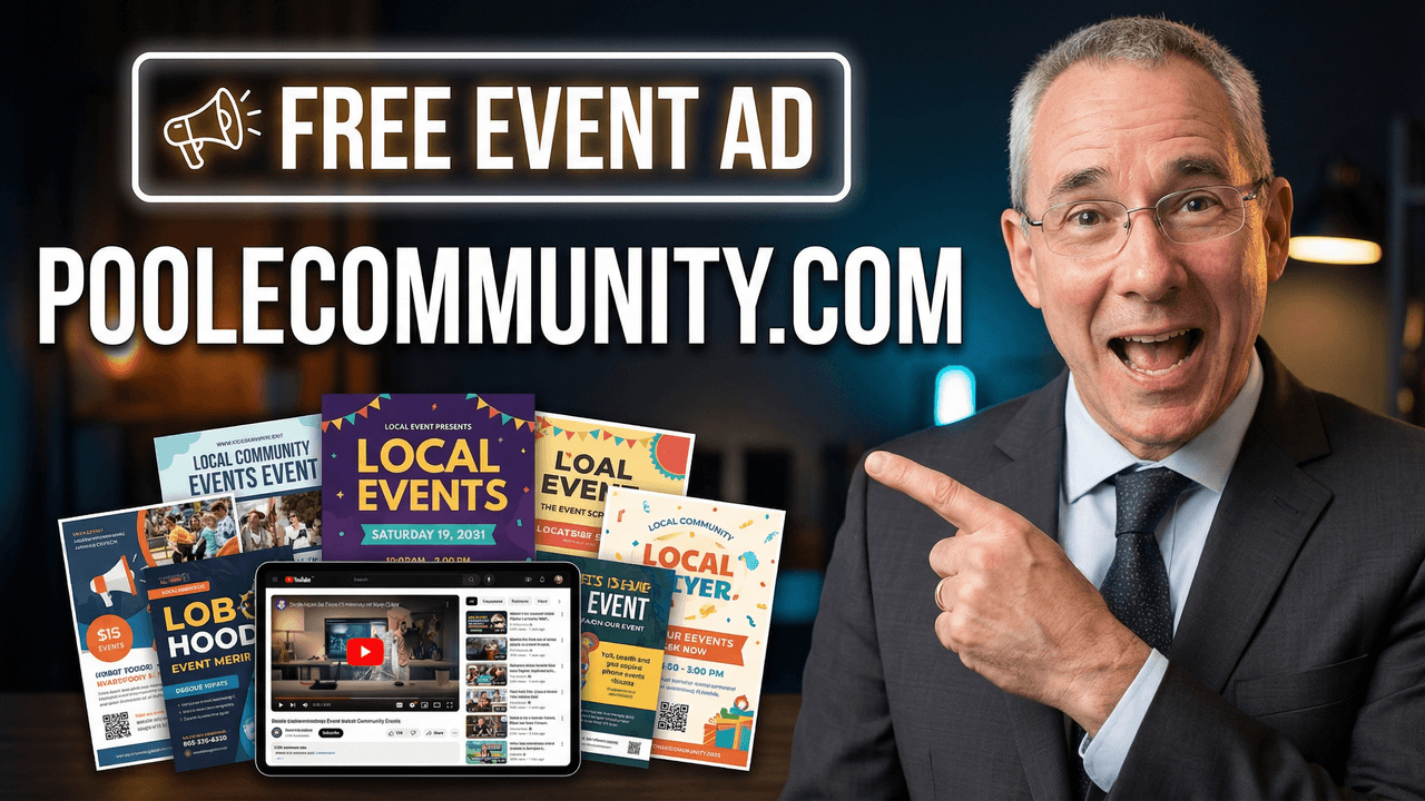Visit, https://www.poolecommunity.com/free-ads to apply for your free, next-event, promotional page.